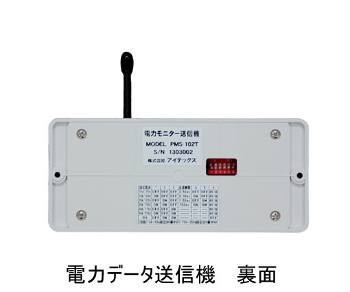 ブレーカーの回路に設置する電流検出器(CT)で検出された電流値を特定小電力無線によりデータ送信します。